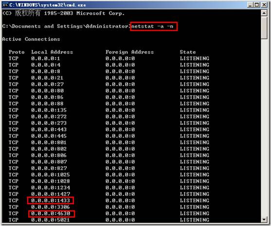 netstat –a –n(如下图表示已经开放)