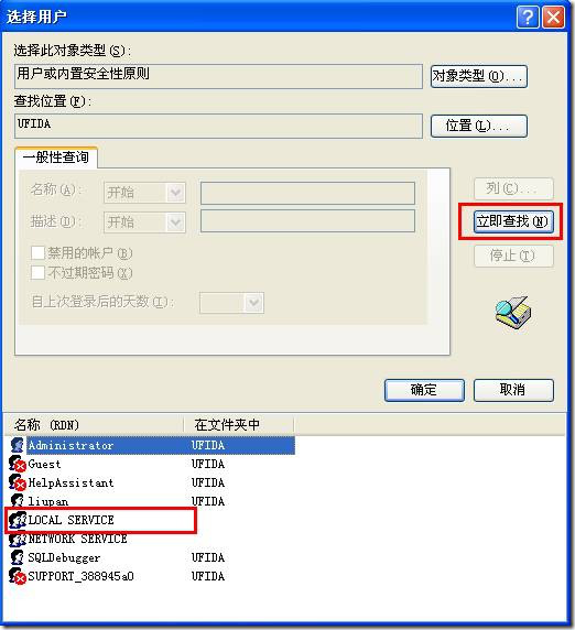 点击“高级”,点击“立即查找”,在列表处选择“LOCAL SERVICE”