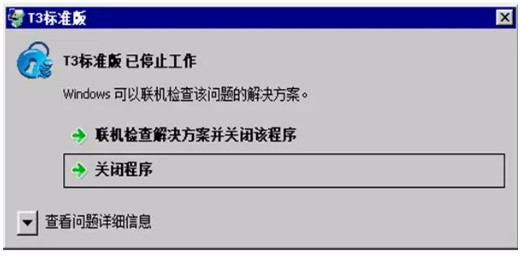 :为什么登录用友T3提示‘T3xx版已停止工作?