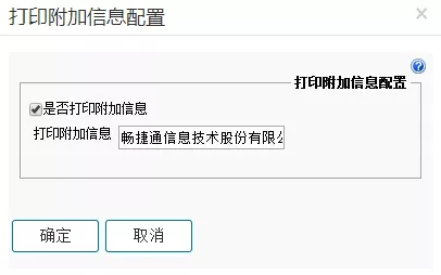 :以系统管理员admin身份登录系统管理,在空白位置按快捷键【Ctrl+Alt+Y】,弹出【打印附加信息配置】页面,取消勾选【打印附加信息】,这样打印就不会显示,若想打印本公司名称,则在【打印附加信息】后录入本公司单位名称即可。
