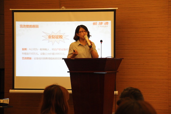 营改增,到底能给企业减多少税?用友集团-畅捷通信息技术股份有限公司高级支持经理郑爽老师给大家带来营改增政策解读与畅捷通产品解决方案。郑爽老师首先讲到营改增出现的原因:重复征税。而解决营业税重复纳税的最终方案就是营改增。