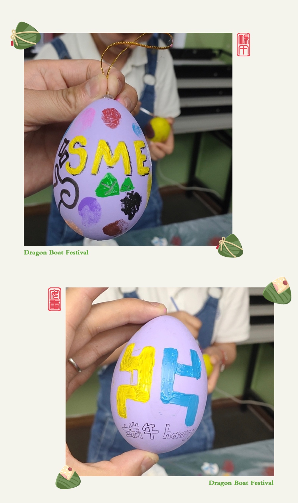 节日的味道,随着大家的欢声笑语逐渐浓烈,第三部分是画彩蛋,大家通过想象力结合自身工作内容将端午祝福画在彩蛋上。